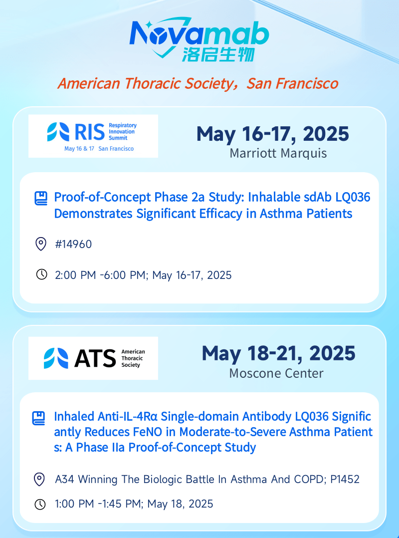 中国上海,2025年5月13日——上海凯发K8天生赢家一触即发生物医药技术有限公司,一家专注于纳米抗体创新药研发的生物技术企业,今日宣布:凯发K8天生赢家一触即发生物将于当地时间5月16日至21日赴美国加州旧金山,受邀参加美国胸科学会(American Thoracic Society, ATS)主办的呼吸创新峰会(Respiratory Innovation Summit,RIS)及ATS国际大会。届时凯发K8天生赢家一触即发生物将分别在RIS和ATS两场大会上以壁报形式呈现最新临床数据——公司自主研发的靶向 IL-4Rα 吸入性生物制剂 LQ036 首个 IIa 期概念验证性临床试验数据。本次展示将全面披露 LQ036 在中重度哮喘患者中的安全性、耐受性、药效指标及初步疗效,标志着凯发K8天生赢家一触即发生物在下一代呼吸道吸入式生物制剂开发领域迈出关键里程碑。